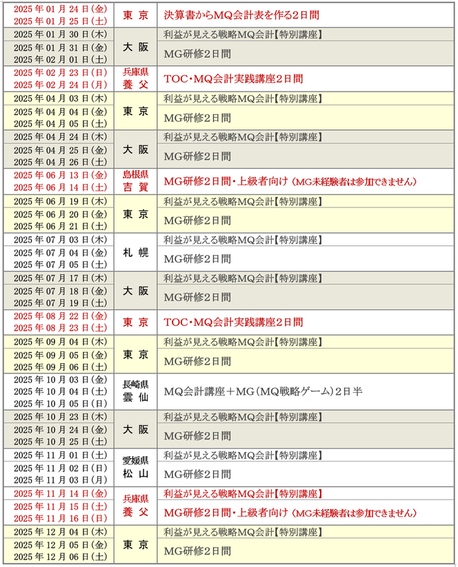 2025.08.22-23 | 東 京 | MQ会計セミナー運営事務局 | 286 |